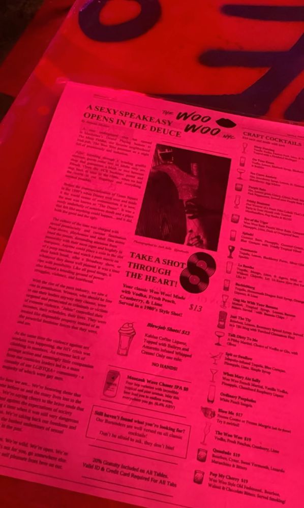 One of the highlights of The Woo Woo is the fun and playful aspect of gaining access. To enter, guests must provide a secret password found on the website, adding to the excitement and exclusivity of the speakeasy experience. Once inside, you'll be greeted by colorful lights, 80s music, and an ambiance that sets the stage for a memorable night out with friends.